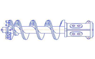 Буры шнековые лопастные серии Б-BAU03 имеют сварной корпус. Забурник и резцы армированы твердым сплавом. Резцы усиленные приварные.
